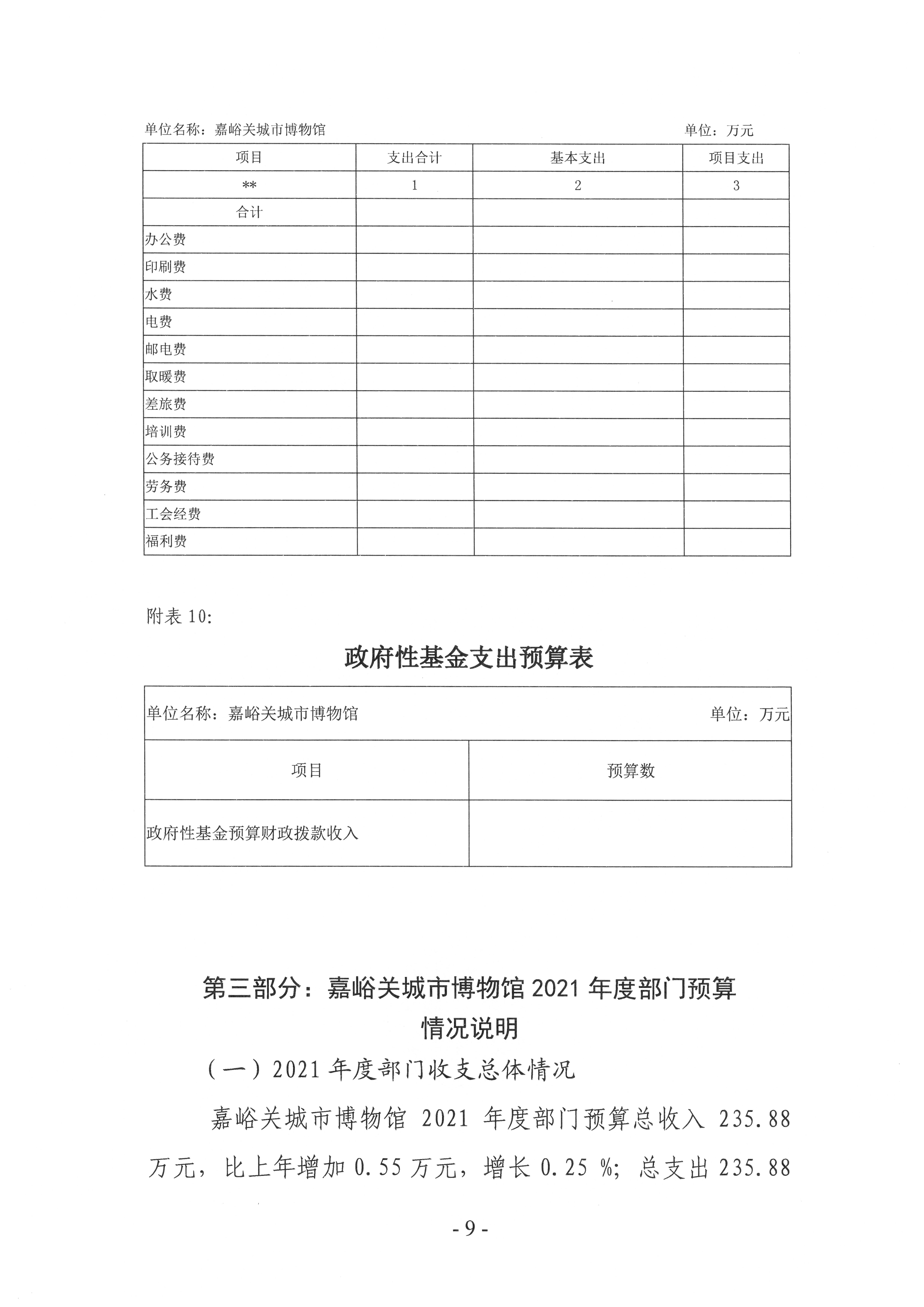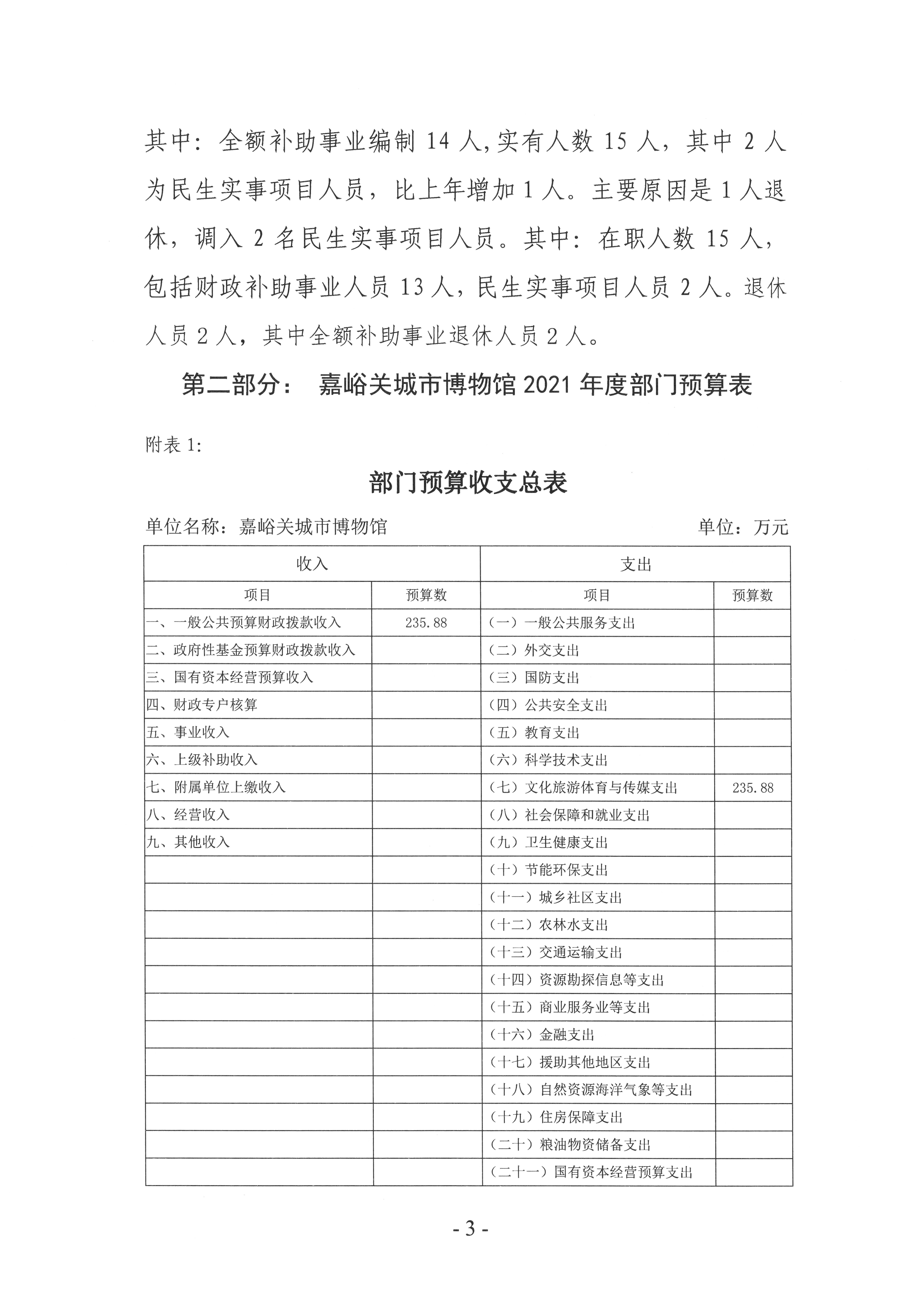 嘉峪关城市博物馆2021年部门预算信息公开情况说明