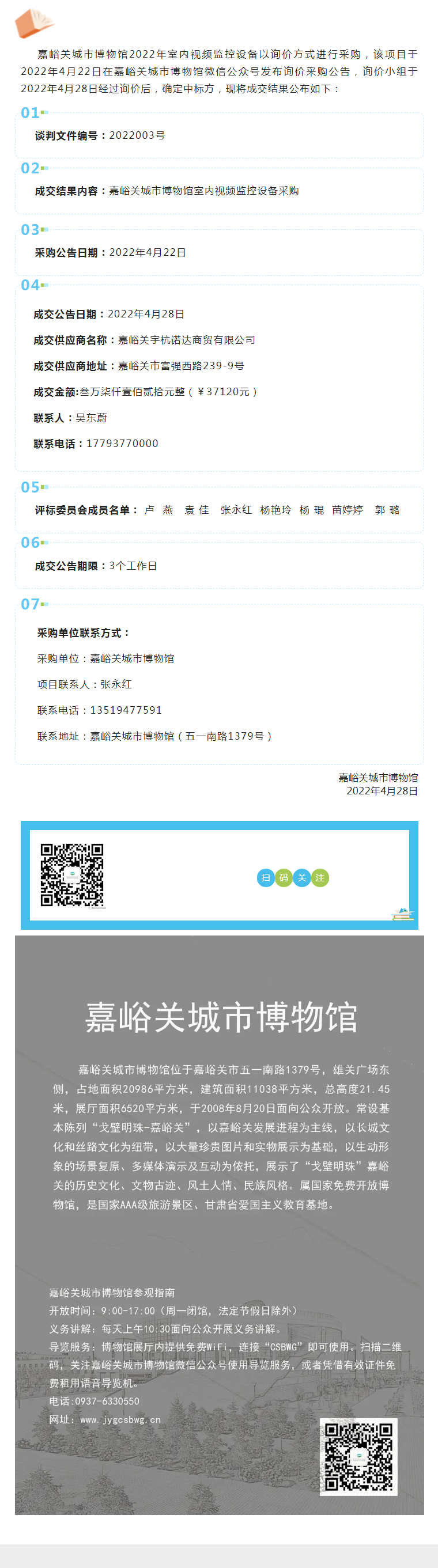 嘉峪关城市博物馆2022年室内视频监控设备项目成交公告