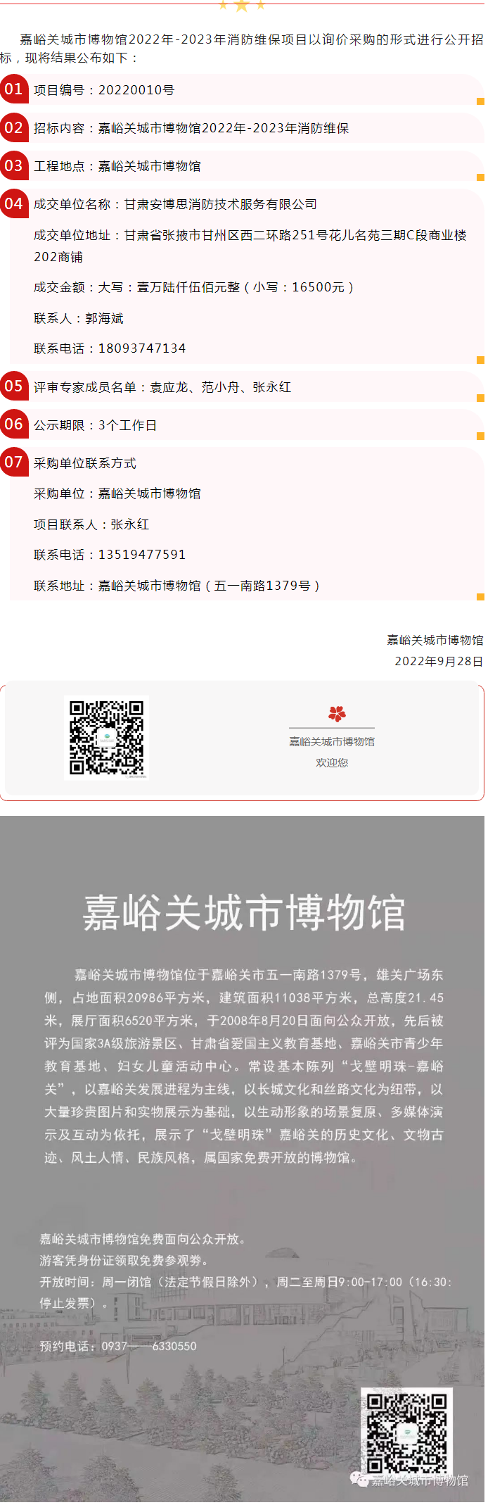 嘉峪关城市博物馆2022年-2023年消防维保项目成交公告