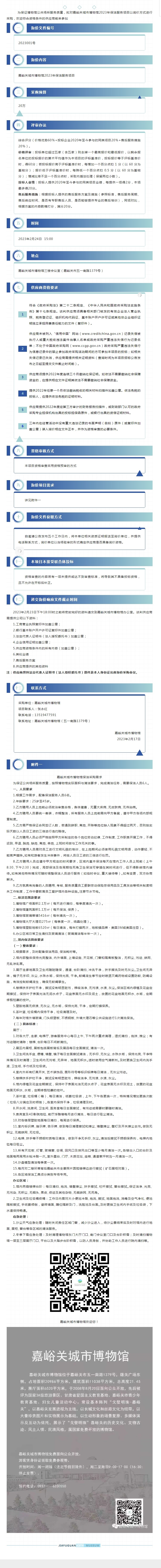嘉峪关城市博物馆2023年保洁服务项目询价采购公告