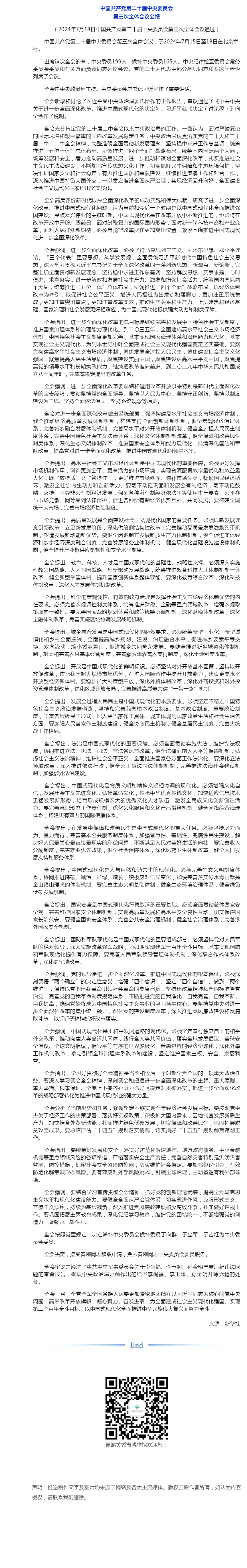 中国共产党第二十届中央委员会第三次全体会议公报